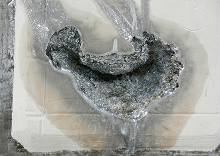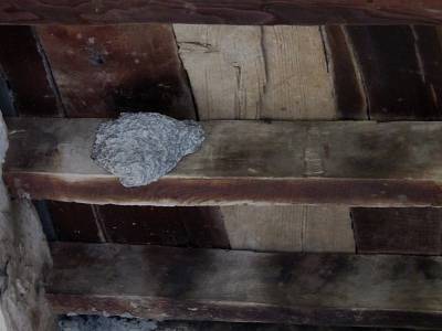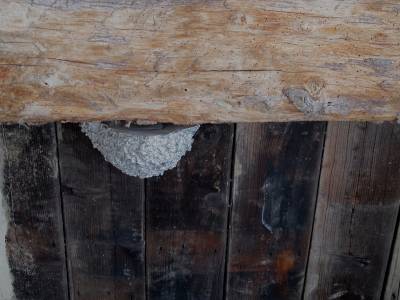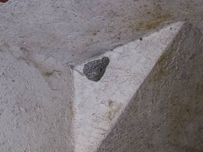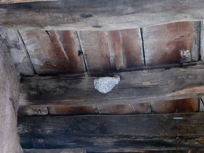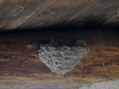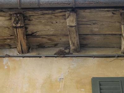 Bei Renata Vonarburg beginnen die Vögel, mit den Flügeln zu schlagen und fliegen schliesslich zum Fenster hinaus. Mit Vögeln und Vogelflug befasst sich auch Regula Weber in ihrer Installation «ra sosta sott i portec» – hiesiger Dialekt für «Die Rast unter den Laubengängen». Regula Weber war 2011 Gast in Casa Atelier und beschäftigte sich damals u.a. mit Kapellen, Madonnenfiguren, Schriften und Nachtbildern. Ihre Ausstellung hiess «Felder» / «Ambiti». Nun kommt sie nach Bedigliora zurück mit elf in Aluminium gegossenen Rauchschwalbennestern, die sie im Dorf unter den gedeckten Gängen installierte. Ein Plan zeigt an, wo im Dorf die Nester montiert sind. Auf der Ausstellungskarte ist kein Nest zu sehen, sondern die halbe Hohlform, in der das Nest gegossen wurde. Warum Rauchschwalben, und warum in Bedigliora? – Darauf weiss die Künstlerin eine präzise Antwort: