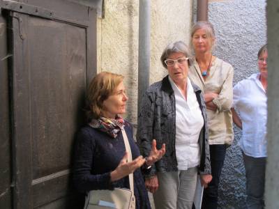 So die Künstlerin über ihre Arbeit. Das Wort und Objekt «Nest» verbinden wir mit Wärme, Weichheit und Geborgenheit, mit Intimität und Schutz für die Kinder. Wie steht es mit den Aluminium-Nestern? Wer sie entdecken will, muss den Blick heben zu den Balken und Steinquadern, die ein Dach bilden über den mit Natursteinen gepflasterten Dorfgassen. Diskret, leicht silbern schimmernd oder von matter Patina bedeckt, sind sie in rhythmischer Abfolge angeordnet: meistens eines allein, manchmal zwei nebeneinander oder gegenüberliegend. In ihnen wird kein Vogel nisten – wir sehen sie von aussen, nicht als Schutzhülle für die anwesenden Bewohner, sondern als Zeichen für deren Abwesenheit. Vielleicht sagt das für ein Nest ungewöhnliche Material – zu hart, zu schwer und zu kalt – auch etwas aus über unsere Welt, aus der hiesige Schwalben verschwinden und in der Menschen aus fernen Ländern keine Bleibe finden.