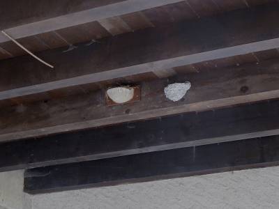 Die nachgegossenen Rauchschwalbennester sind meist an den ursprünglichen Orten installiert, wo die Schwalben einst ihre Nester bauten. Die Nestabdrücke oder -fragmente sind oft noch zu sehen. Die Nester aus Aluminium haben die Form einer flachen Viertelkugel und sind im oberen Teil offen.