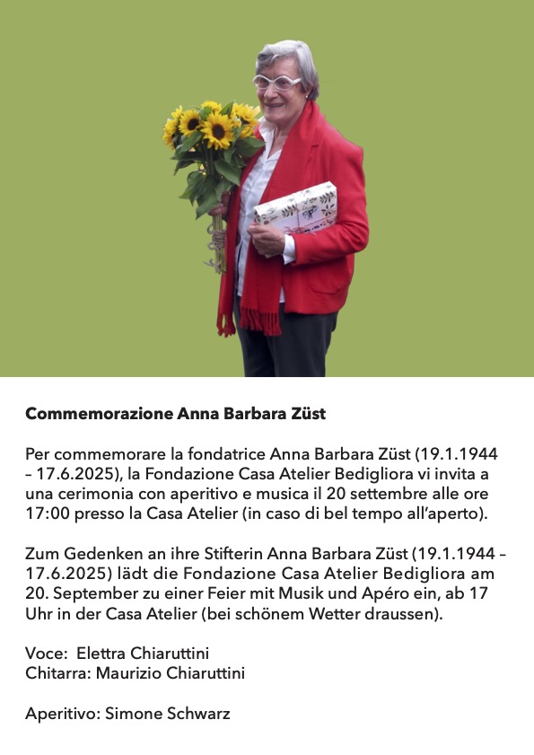 Wir sind bestürzt und tief traurig über den Tod der Mitbegründerin und Präsidentin der Fondazione Casa Atelier Bedigliora
