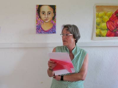 Die Abgeschiedenheit in Bedigliora erlebte sie wie einen spirituellen Rückzug, neben der Malerei las sie viel. Besonders empfiehlt sie den mexikanischen Autor Juan Rulfo, der das Leben in ihrer Heimat in magischem Realismus beschreibt. Magischer Realismus scheint mir auch ein gutes Stichwort für Soledad Tafollas Bilder: Da ist alles klar dargestellt und erkennbar, und doch tauchen die Formen und Farben das Gesehene in eine spezielle, traumhafte Atmosphäre. Warum eigentlich heisst die Darstellungen von Früchten und Blumen «Stilleben», «Natura morta»? Ja, das habe schon Frida Kahlo empört, entgegnet die Malerin, und Frida Kahlo habe deshalb den Namen des Genres geändert in «Natura viva» – belebte, lebendige Natur, das passt auch zu Soledad Tafollas Bildern.